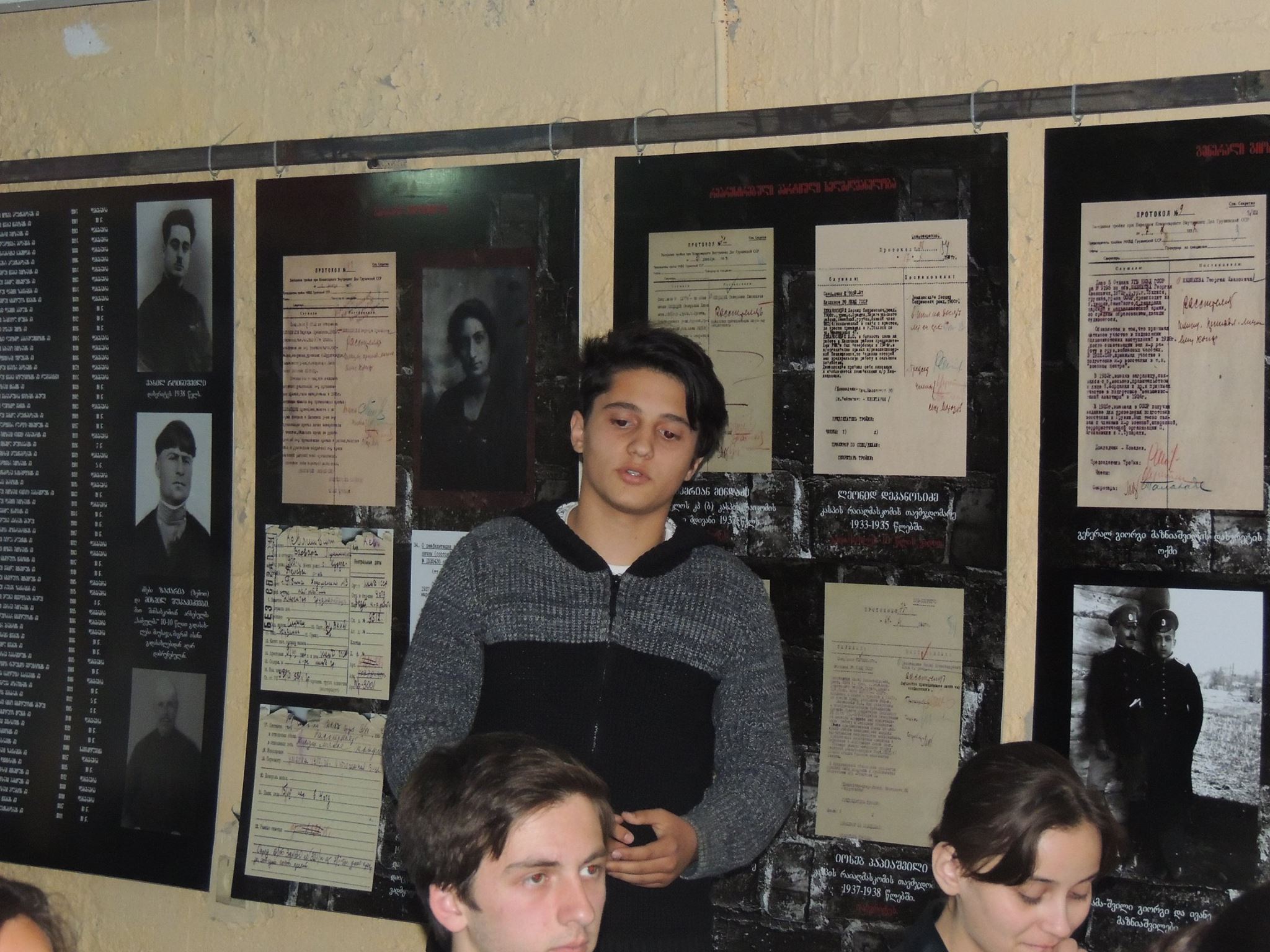 Before the museum was finalized, many interesting projects were implemented. The survey was conducted - "What are the inhabitants of the Caspian repression?" Meeting was held with Vano Jakhua, head of the MIA archive, who spoke to the students about the materials stored in the archives. The students examined the remaining letters and photographs in repressed families. The film was screened "Discourage" and discussion. Visit of the Tbilisi Occupation Museum The students were trained about "human rights". Children filmed and installed the film where the footage is used from above mentioned film. In the film is the interview of the family of the repressed family and the staging scenes reflecting the past period and revives the audience.