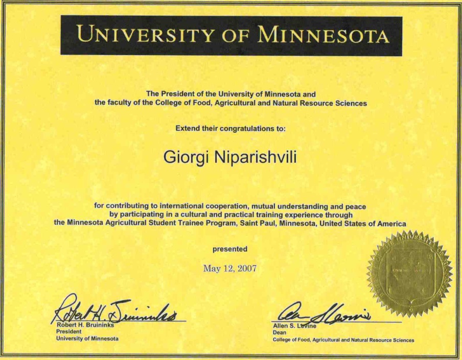 In 2008-2009 academic year GPA was the first at the Faculty of Dental Sciences of Tbilisi State Medical University and 2009-2010 academic year - already GPA - among the first of every faculty students.